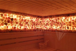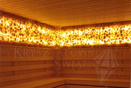Salt Panels improve the healthful qualities of saunas and enrich the air with precious microelements. Resistant to high temperatures, Panels are dedicated to existing and new saunas alike. The saunas where we instal our Salt Panels differ from other amenities of this kind in that the panels are composed of salt crystals, which perfectly complement the wooden interior.